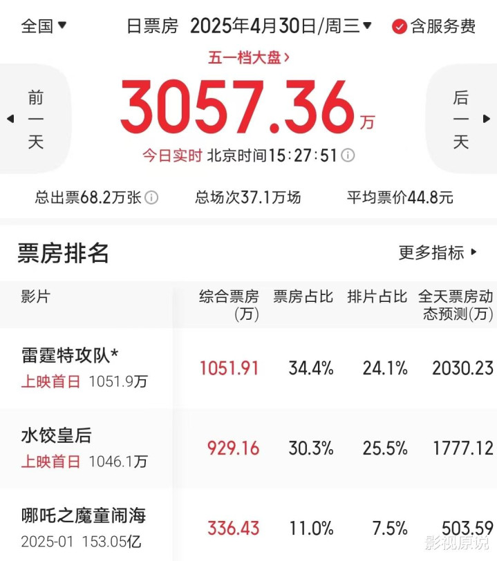 到现在半天多的时间都过去了,《水饺皇后》的日票房却还没有达到1000万人民币。而与之同时上映的《雷霆特攻队》,却以100多万人民币的优势一直稳居日冠的位置。这属实是让人没有想到,毕竟好莱坞的电影,尤其是好莱坞的漫威超级英雄大片,在我们国内早已没有市场。